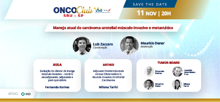 Marque na sua agenda: dia 11/11, a partir das 20h, nosso grupo de especialistas irá se reunir para falar sobre o manejo atual do carcinoma urotelial músculo-invasivo e metastático. Não perca!